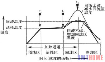 焊錫膏回流過程,焊錫膏在回流爐加熱的環(huán)境中,焊錫膏的回流分為四個階段: